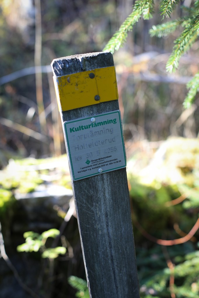 - Holfältre, husgrund med nedrasad skorsten. Runt Holfältre finns väldigt mycket att upptäcka. Vi har inte hittat någon jordkällare dock. En ledtråd är att där det är mossa har det varit gärden, men inte där det är blåbärsris. Smeeres lilla äng förstördes nog av vägbygget.
