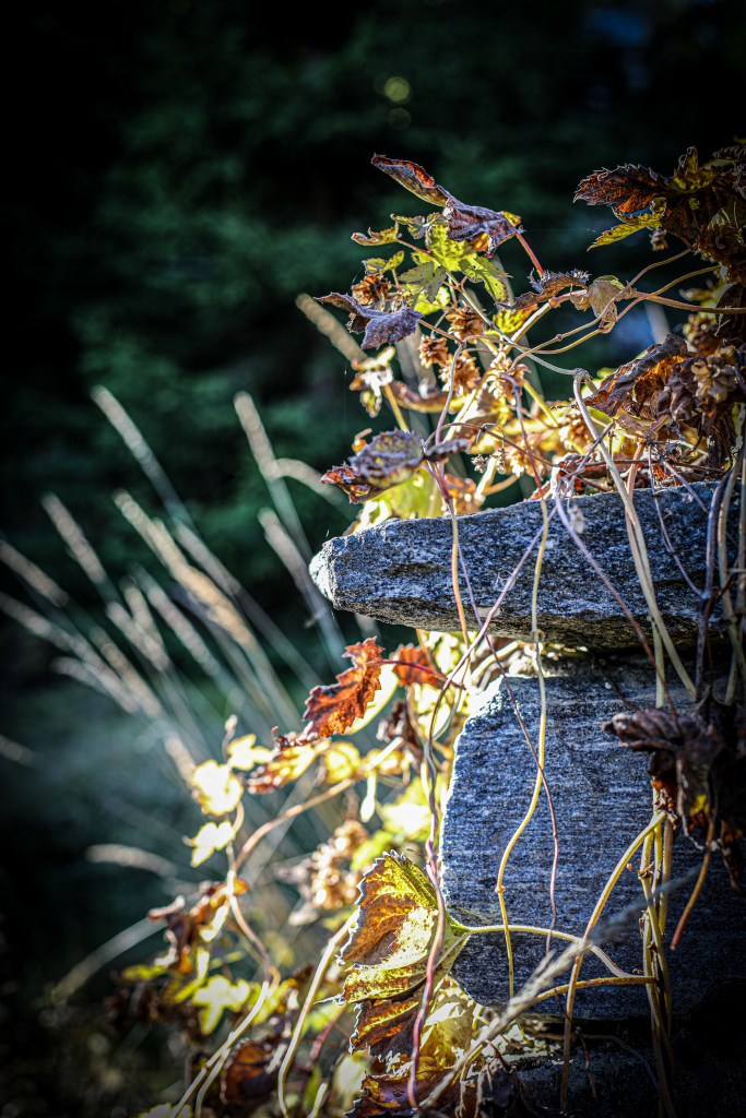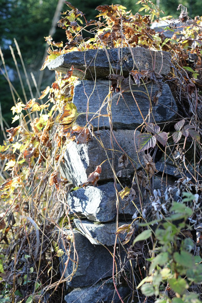 Här är mer bilder på murstocken och husgrunden. Det är väldigt vackert att murstocken är täckt av humle. Gjorde de öl månne?