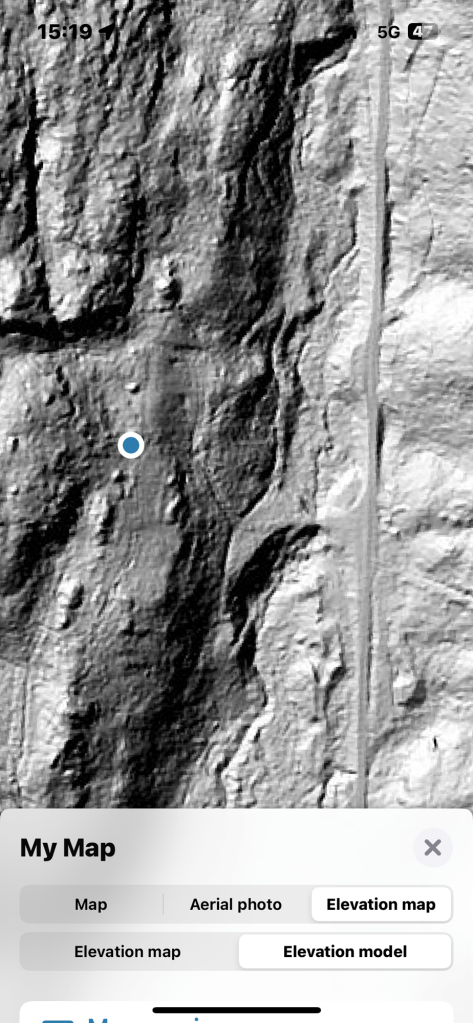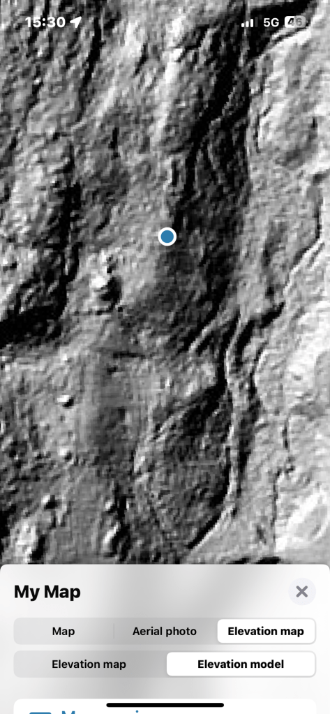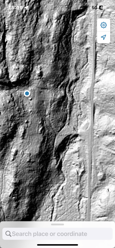 Här är kullen med “stenbrottet, sydväst om den blå pricken: