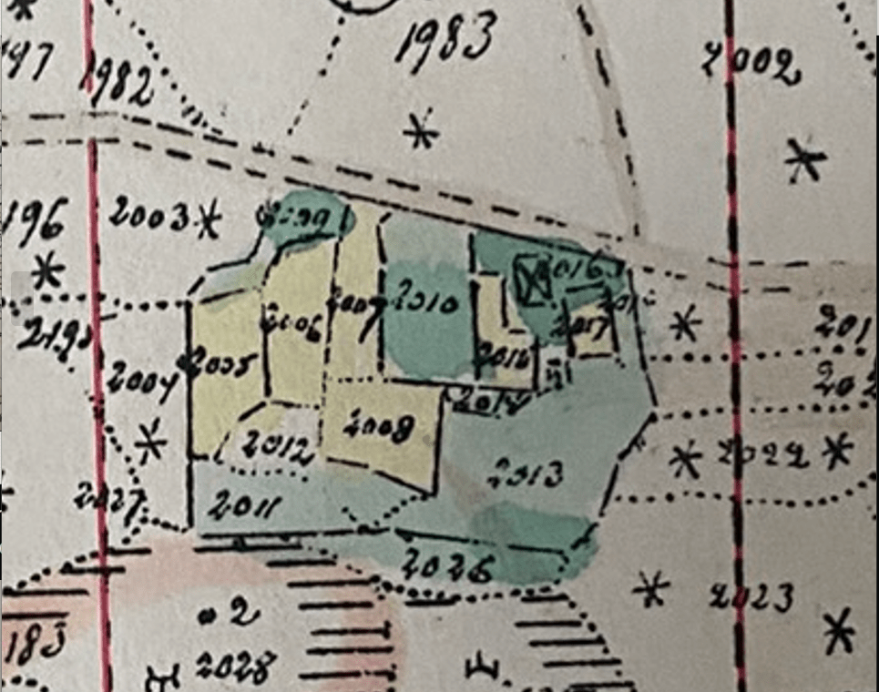 Notera stigen som går rakt norrut, den gick man förmodligen för att komma till Lässerud. Kanske man gick i skola där. Förklaringar till färger etc, det syns lite dåligt men gult verkar ju vara åker och blått och grönt är nog tomt och äng: