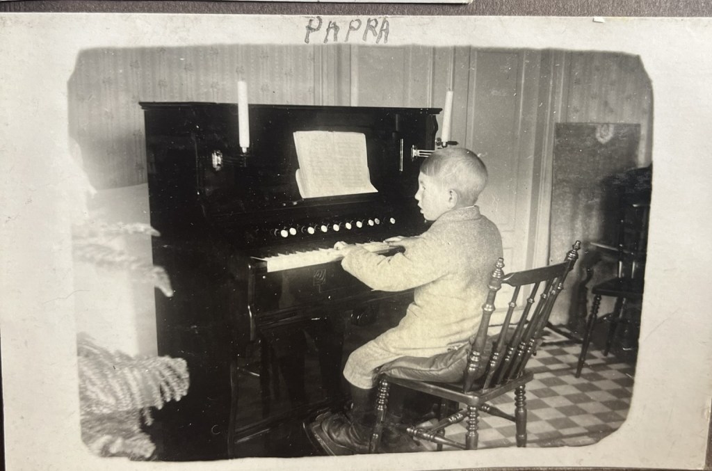 Musik var trevlig underhållning och här har man köpt en Hammondorgel som barnen får lära sig spela på. Arthur i Månstuga på bilden från tidigt 1900-tal: